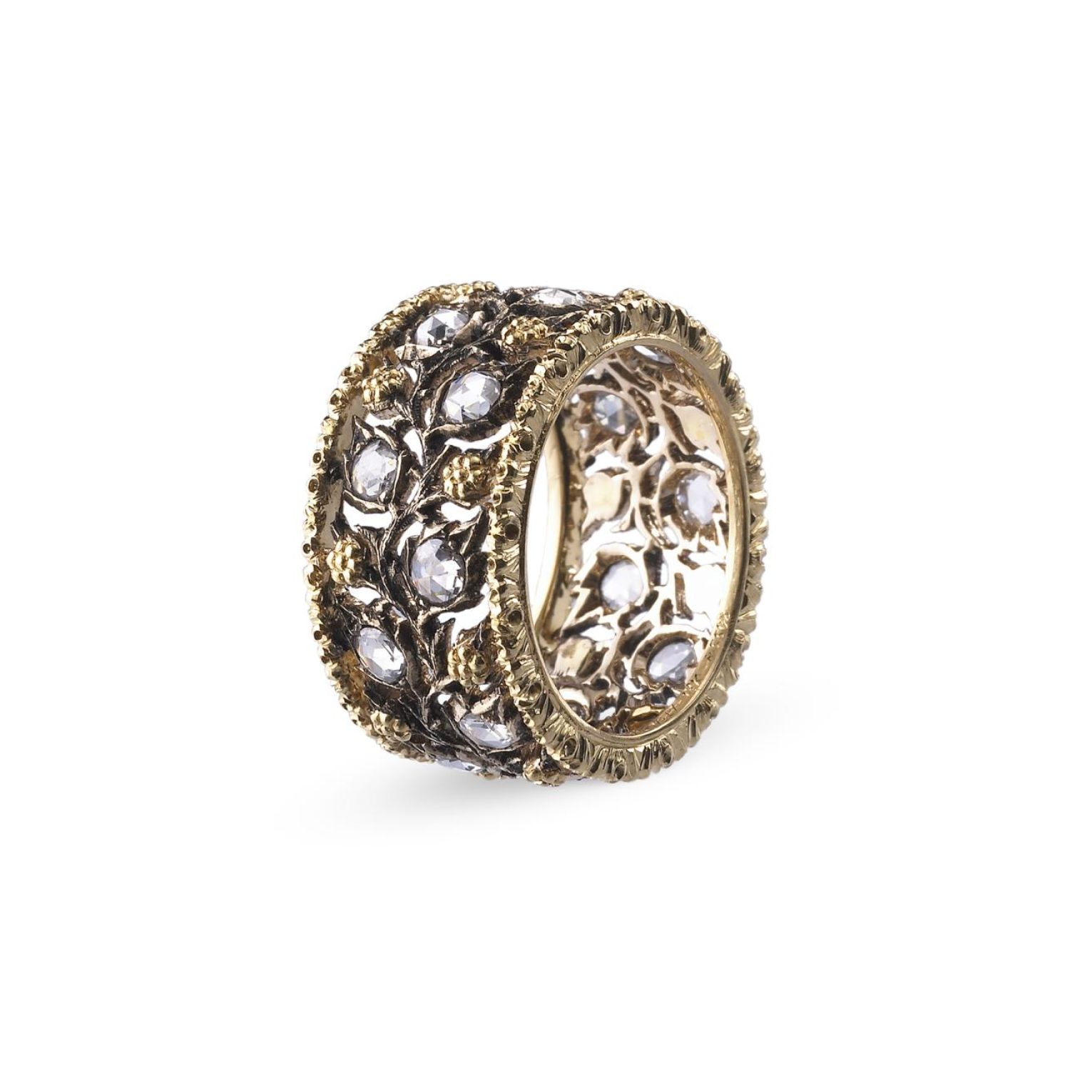 白金和黄金Eternelle戒指,镶嵌钻石. 2 fila foglie Morette样式