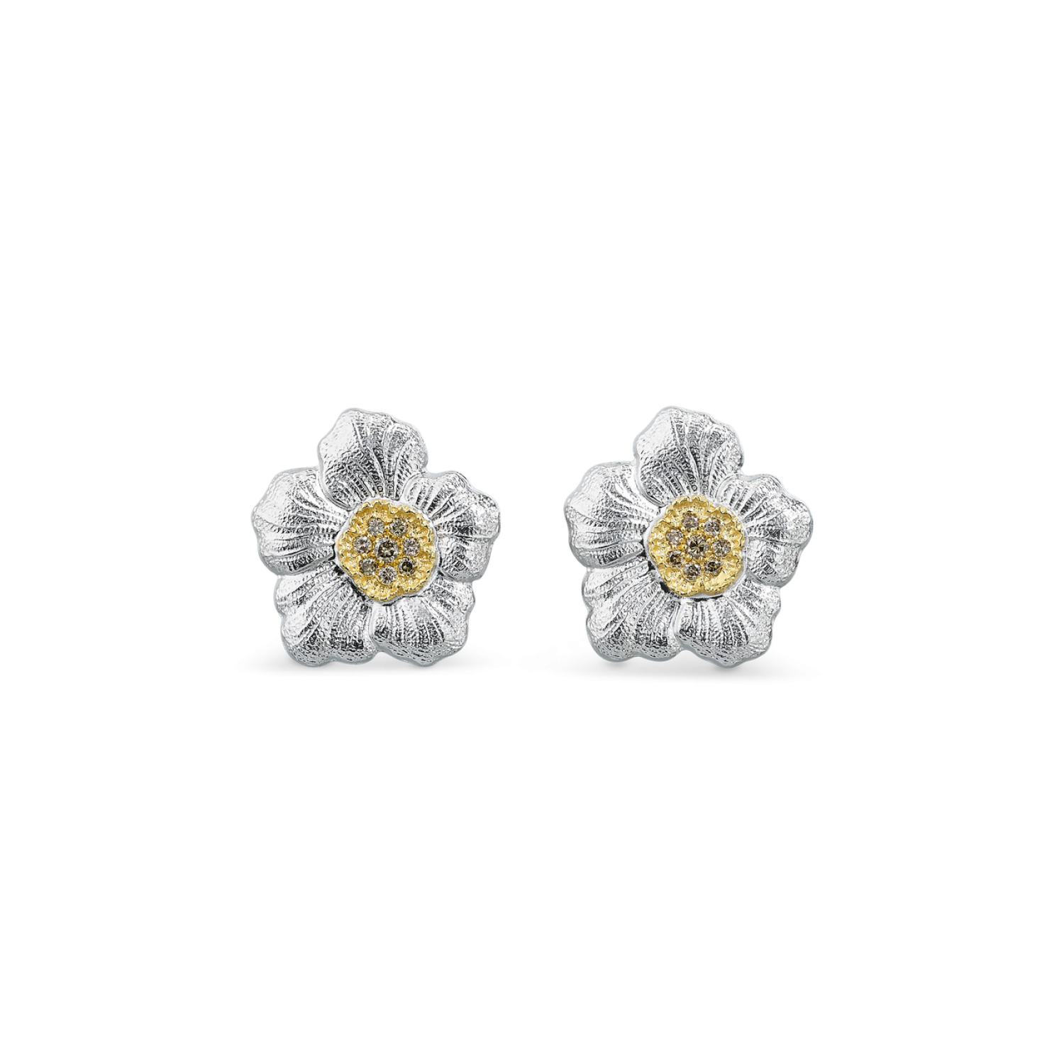 镶嵌彩钻的银耳环. 栀子花,直径:2.5 厘米