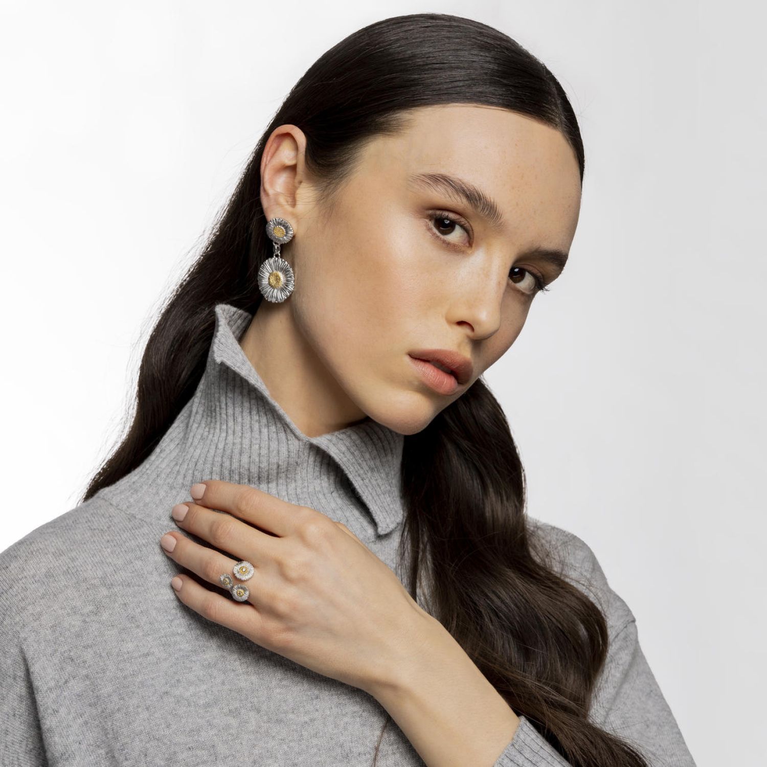 镶嵌彩钻的银耳环. 雏菊,直径:1.6厘米和2.5厘米 - 长度:5.1厘米