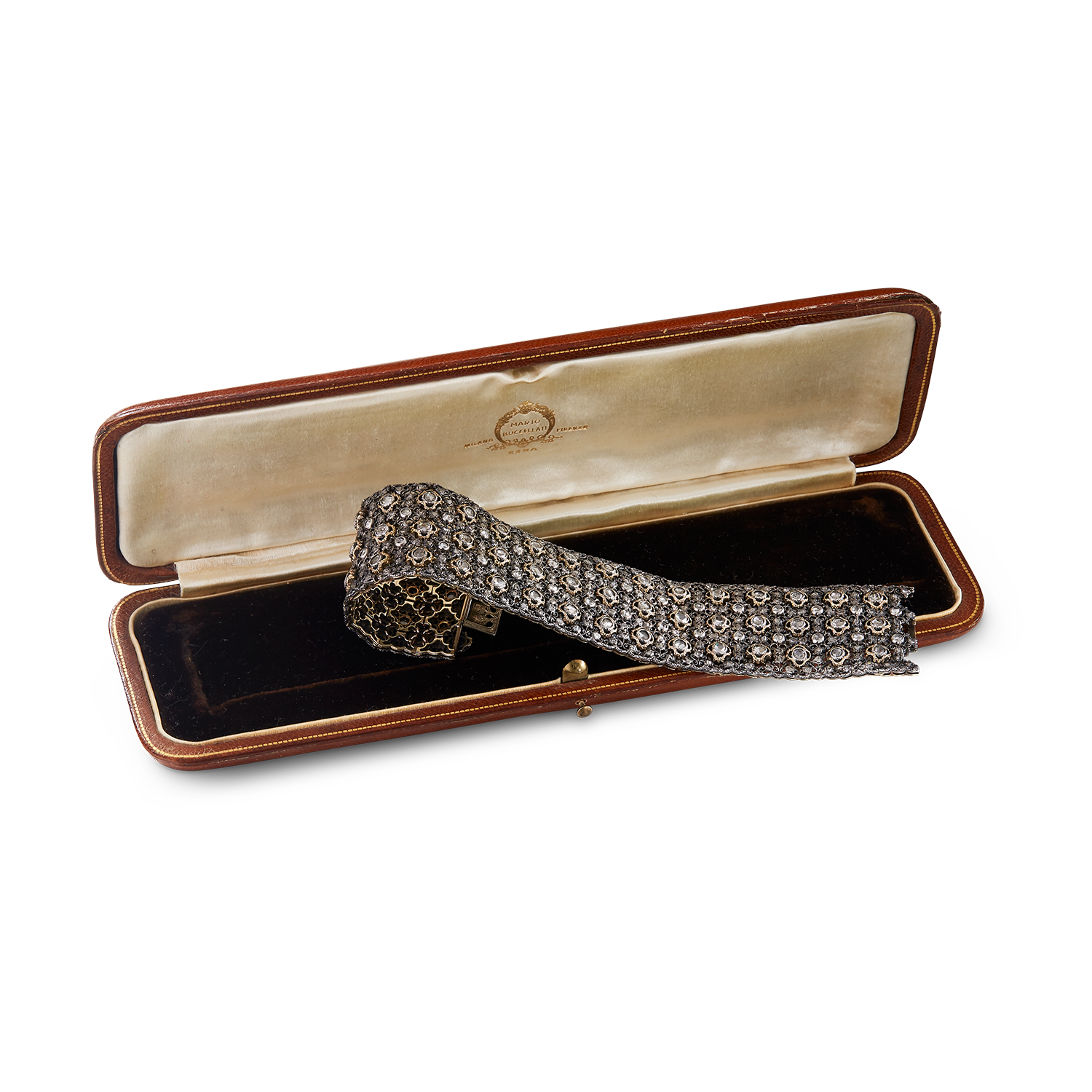 这款手链采用经典的ramage叶片风格工艺,在Mario Buccellati的作品中屡见不鲜,并在后续各类珠宝中时常出现。
