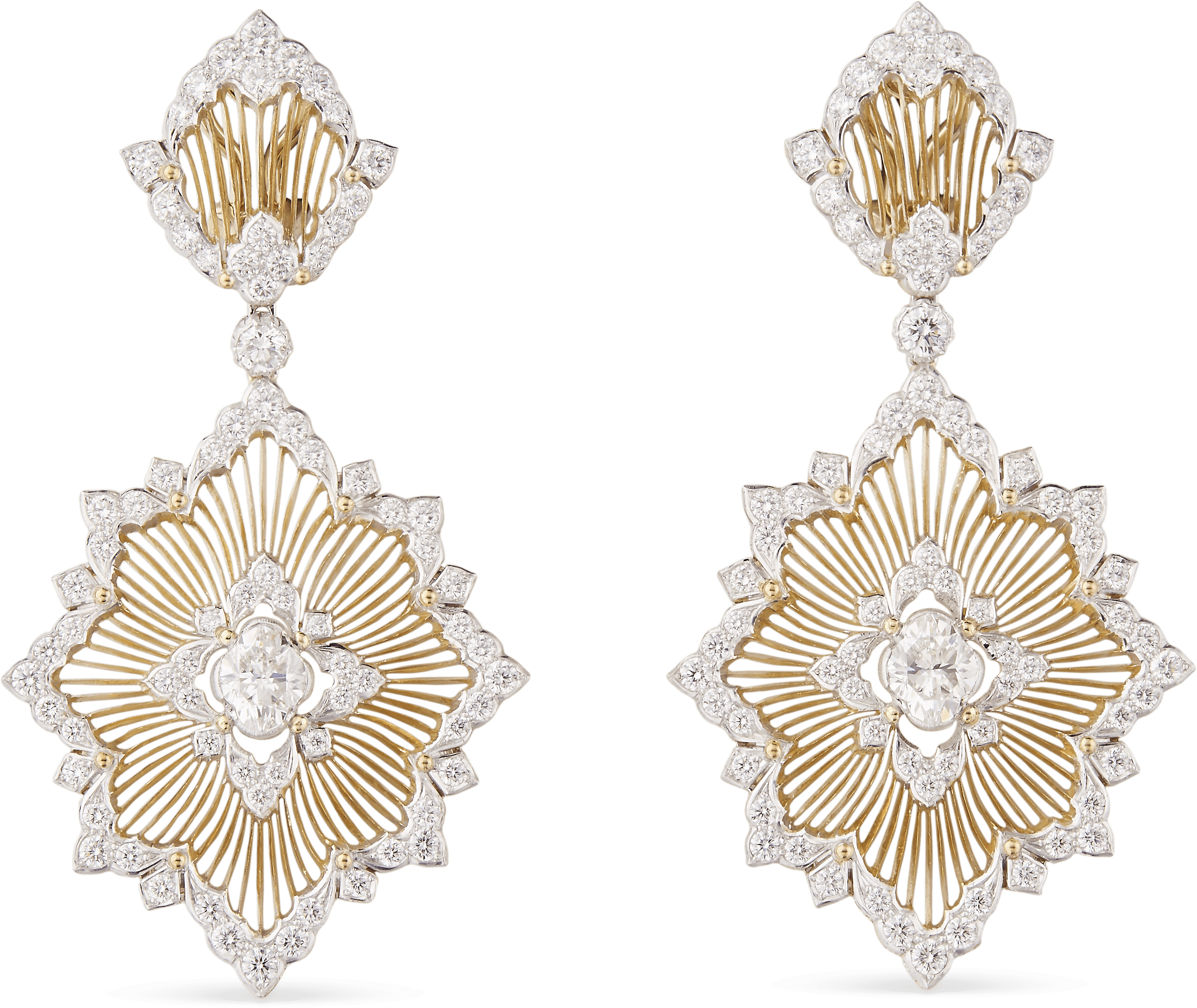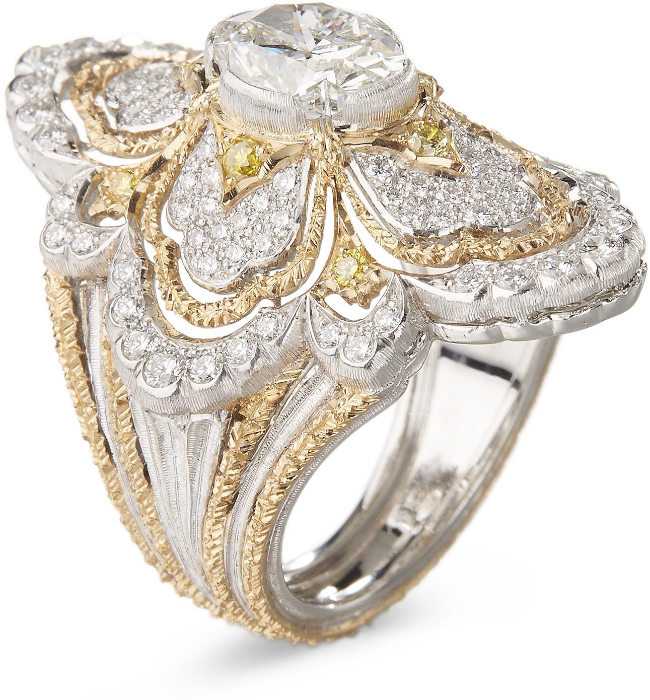 为庆祝Buccellati布契拉提创立100周年,品牌于巴黎高级定制时装周期间,特别推出“Buccellati-cut”布契拉提切型钻石。品牌与钻石行业的领导者Taché Diamonds共同研究合作多年,Taché Diamonds总部成立于1957年,位于比利时安特卫普,以精细的质量把控和可靠的钻石供源闻名于世。 在深入研究了光线优化技术后,为获得最优的亮度和光泽,钻石样品在经历近一年的打磨后才最终成型,以释放出最高标准的光泽和美感。