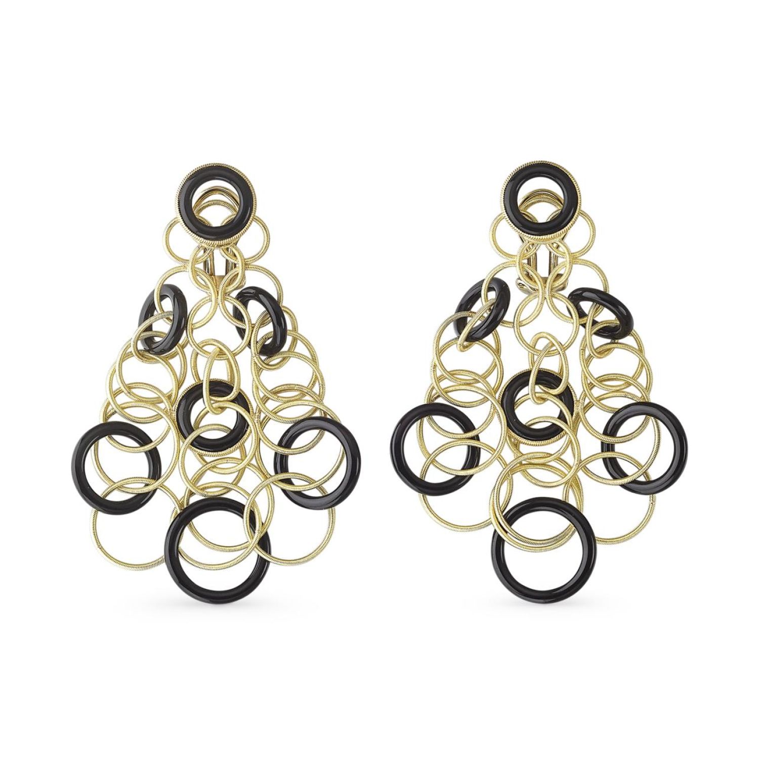 黄金耳环,镶嵌缟玛瑙. 长度:7 厘米