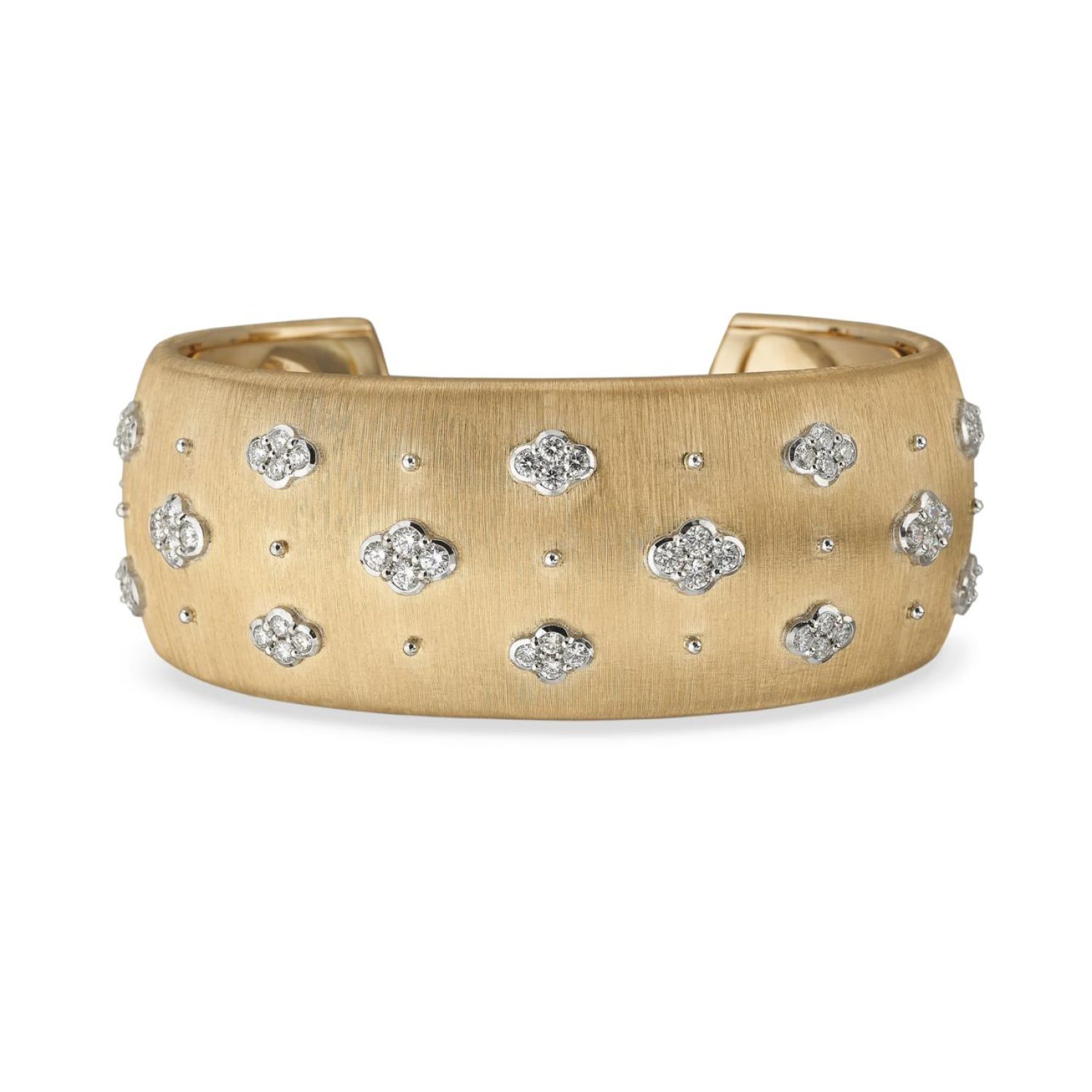 他欲打造一件集品牌所有经典金匠技艺之大成的珠宝,尤显雕工纹饰技艺之巧夺天工。此后,安德烈·布契拉提(Andrea Buccellati)推出了镶钻AB和Giglio徽标等全新纹饰图案,丰富了这一系列。