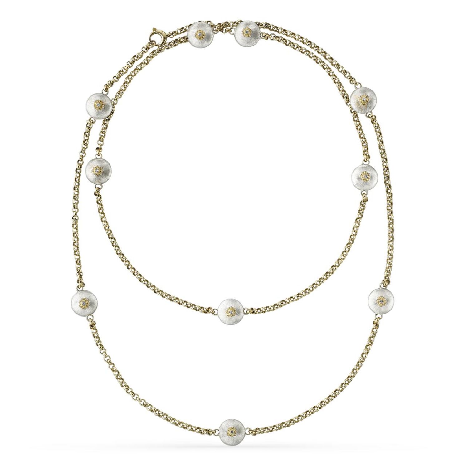 他欲打造一件集品牌所有经典金匠技艺之大成的珠宝,尤显雕工纹饰技艺之巧夺天工。此后,安德烈·布契拉提(Andrea Buccellati)推出了镶钻AB和Giglio徽标等全新纹饰图案,丰富了这一系列。