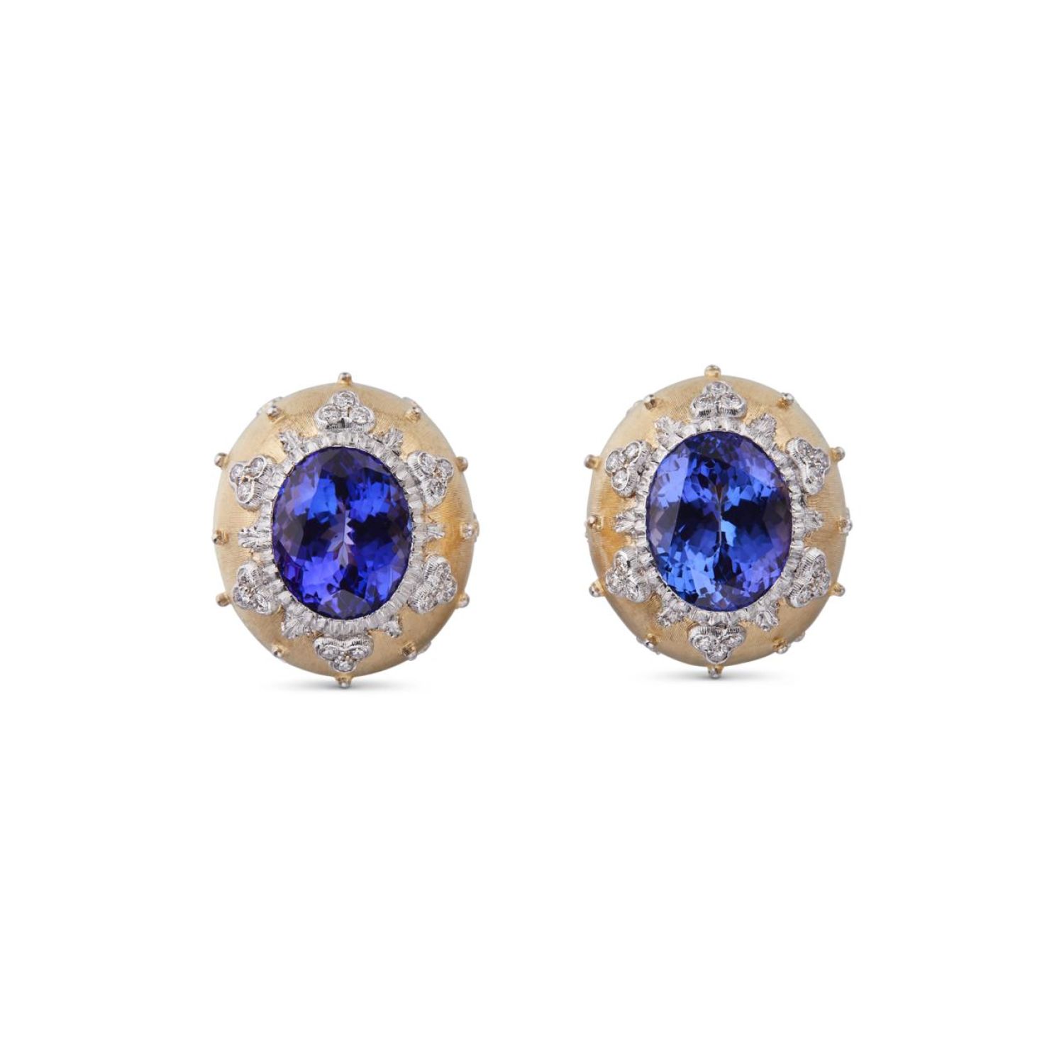 Stone: N.2 FACETED TANZANITE CT. 7.81; N.36 ROUND BRILLIANT-CUT DIAMONDS CT. 0.28 |