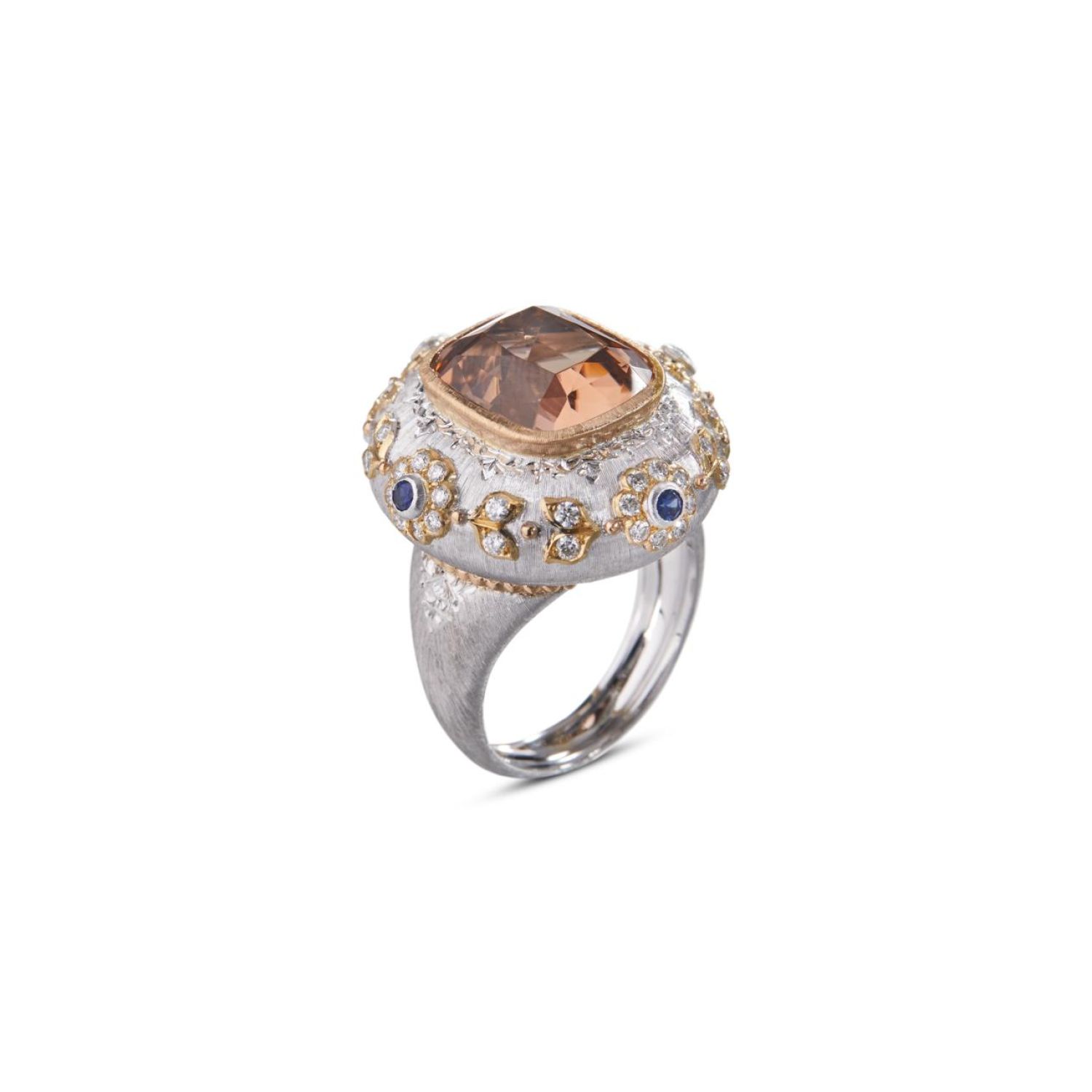 Macri Color系列表达布契拉提Buccellati对于至美至雅的孜孜以求。精巧rigato雕纹赋予黄金表层璀璨光辉,邂逅魅艳亮丽的宝石。该系列作品将艺术与工艺巧妙融合,亦成为展现布契拉提Buccellati独特风格与匠心工艺的经典佳作。