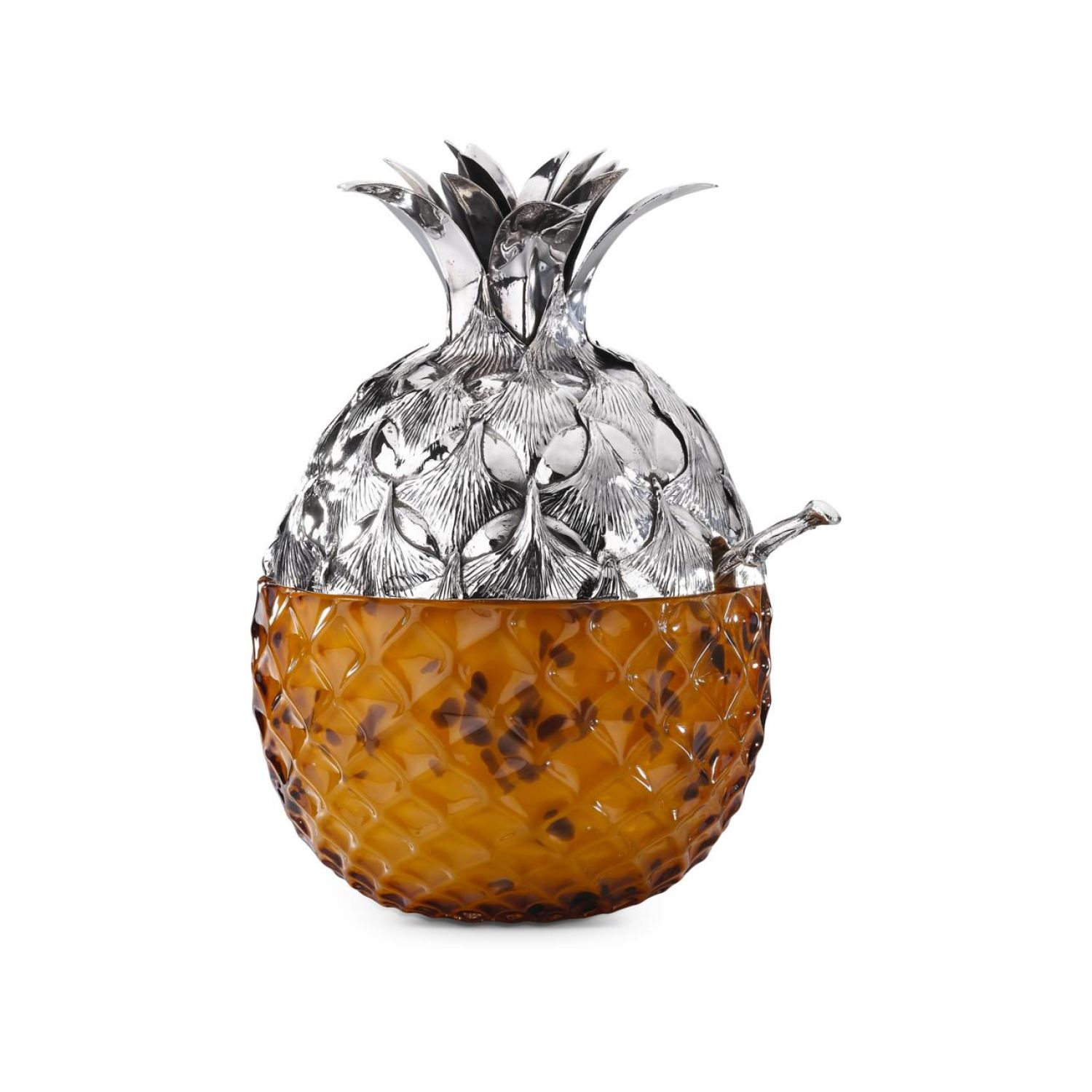 银罐,镶嵌其他材质. 凤梨款果酱罐。尺寸:11 x 11 厘米 - 高度16.5 厘米