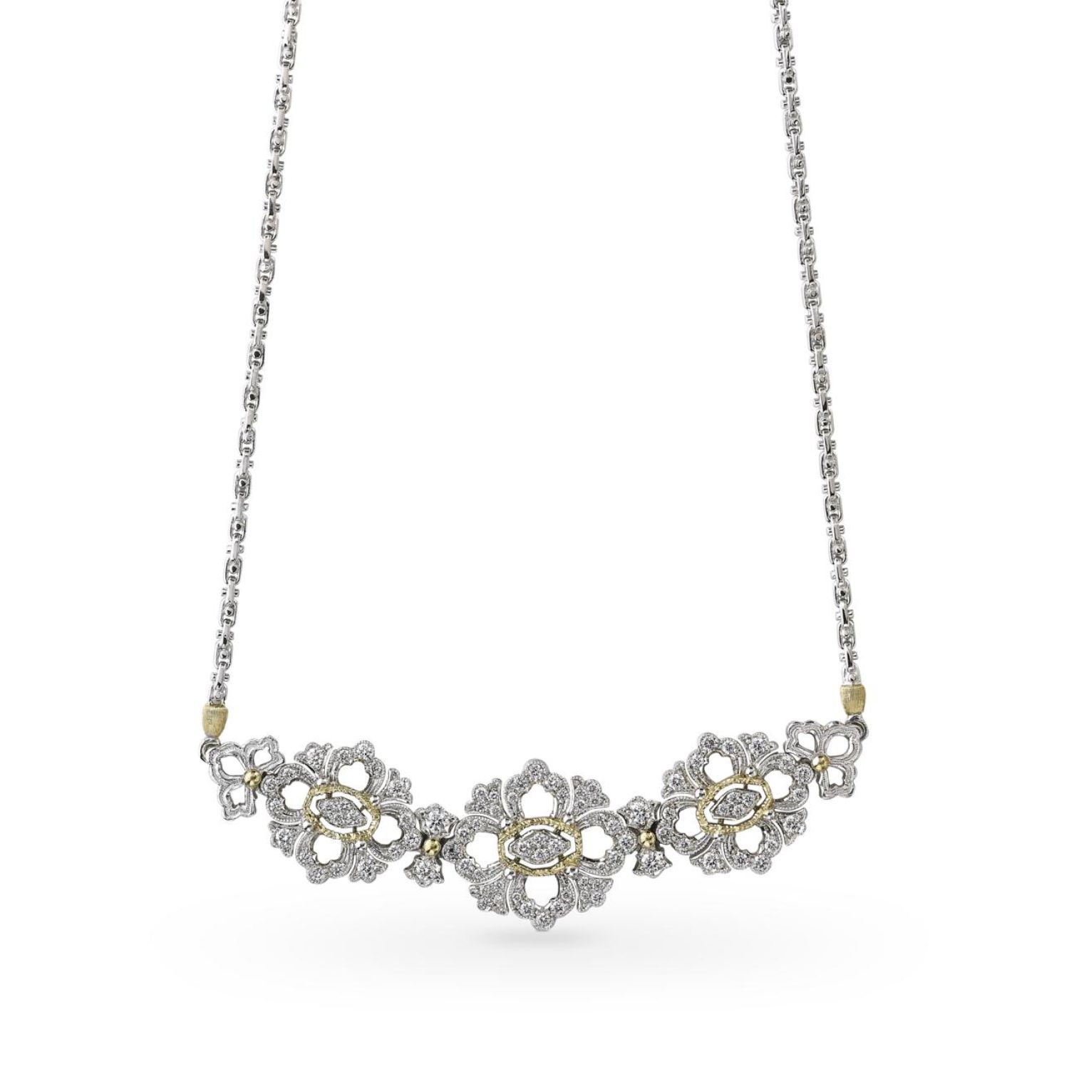白金和黄金项链,镶嵌钻石.