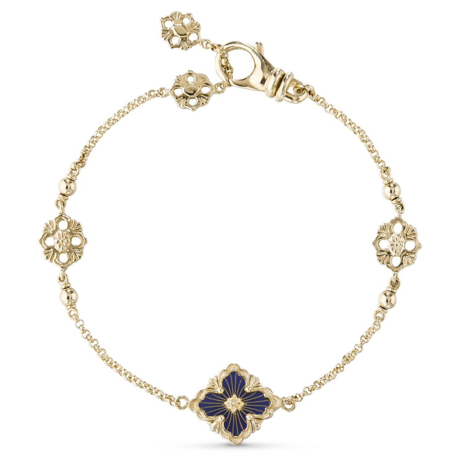 Opera Blu黄金和白金手镯,缀有蓝色珐琅元素和辐射状珠罗纱图案。
