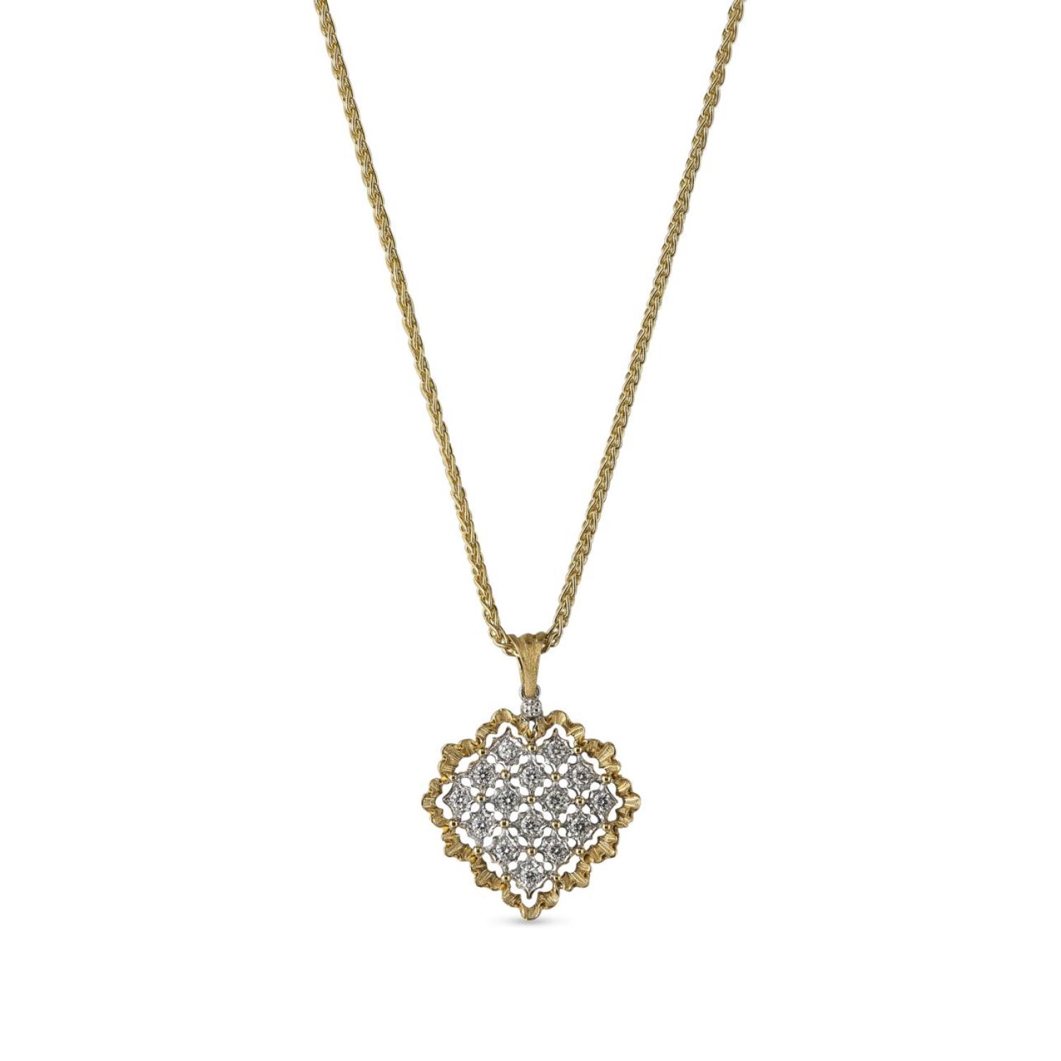 白金和黄金镶钻项链,配以吊坠。