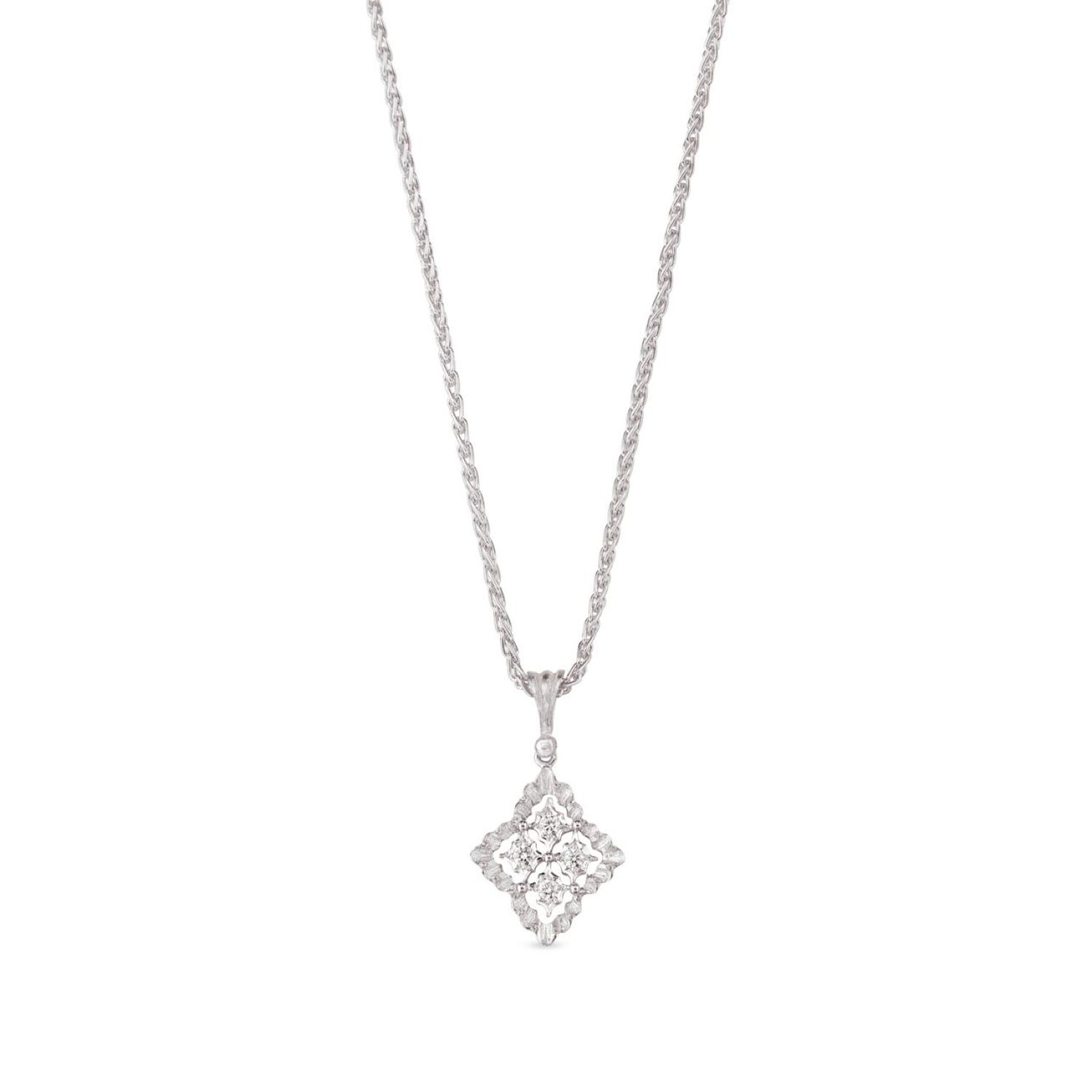 白金镶钻项链,配以小吊坠。