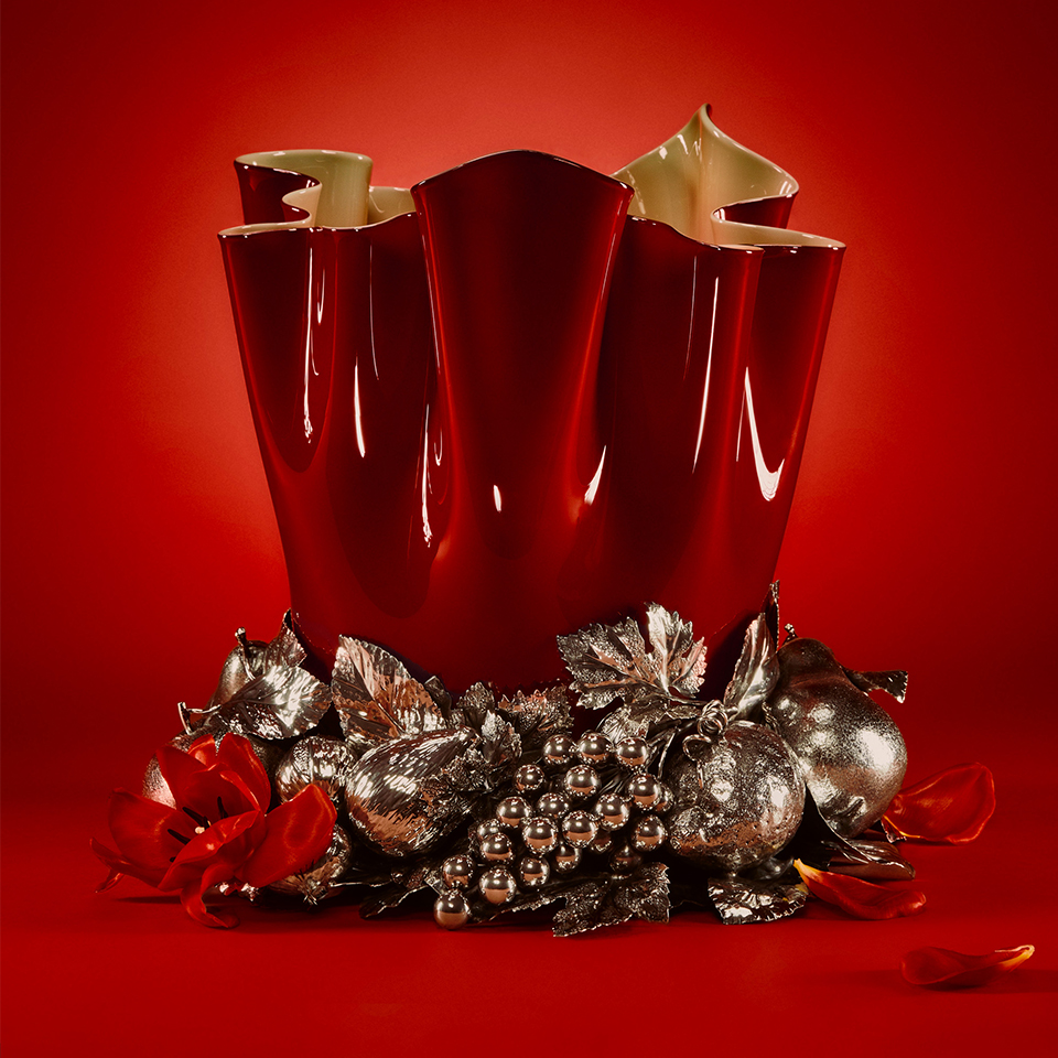 Buccellati与威尼斯源远流长,大抵缘于金匠技艺,Buccellati始终从这块品牌发祥地超过百年的历史积淀中汲取灵感。这种联系随着时间的推移得到了加强,亦是缘于Buccellati与Murano玻璃大师之间的多种合作,从源自Gianmaria创意的果酱罐装水果和蔬菜开始,到2016年与Venini的首次合作,对Caviar系列做出不同寻常的诠释,进而打造出最新的“Rosso Maraviglia”系列,对创意玻璃和珍贵的手工雕刻银器进行完美融合。
