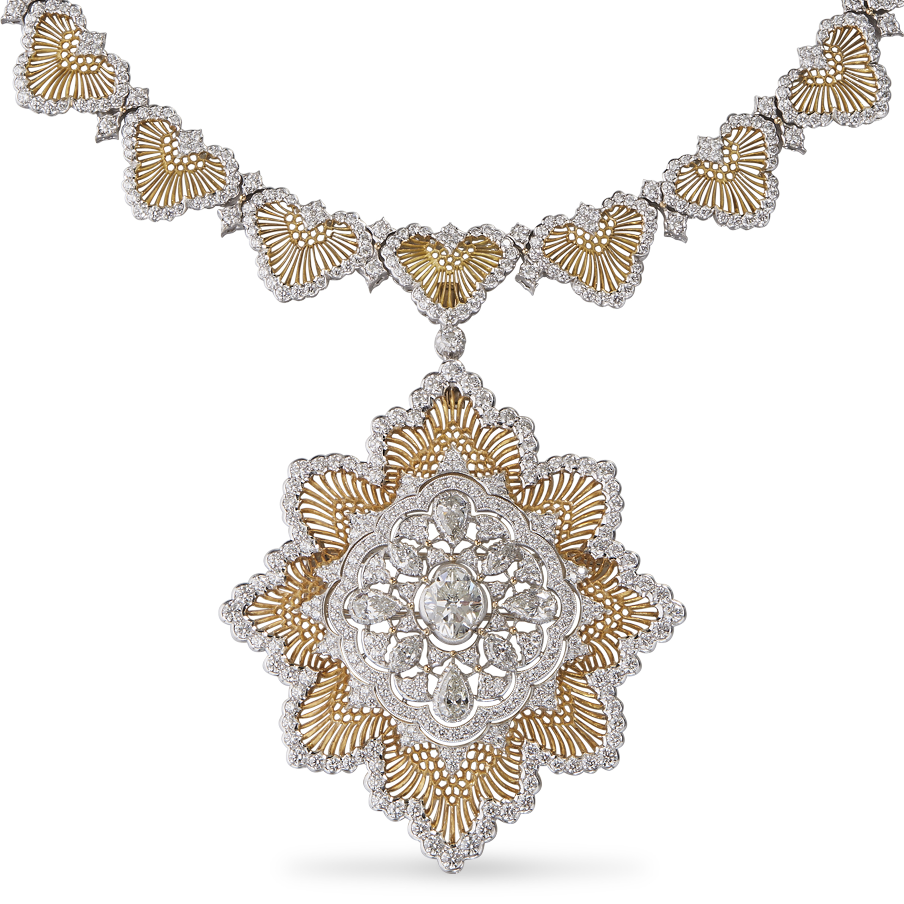To celebrate the centenary of the House, founded in 1919, we are thrilled to announce the new Buccellati-cut diamond. The Buccellati-cut diamond was born after a long study and research in collaboration with Taché Diamonds, an industry leader founded in 1957, which has developed a reputation for meticulous quality control and reliability of supply. The first sample of the Buccellati-cut diamond took almost a year to be finalized, based on an extensive study of light optimization to achieve maximum brilliance and lustre. As a result, the Buccellati-cut diamond and its facets boast a unique light and beauty of the highest standard.