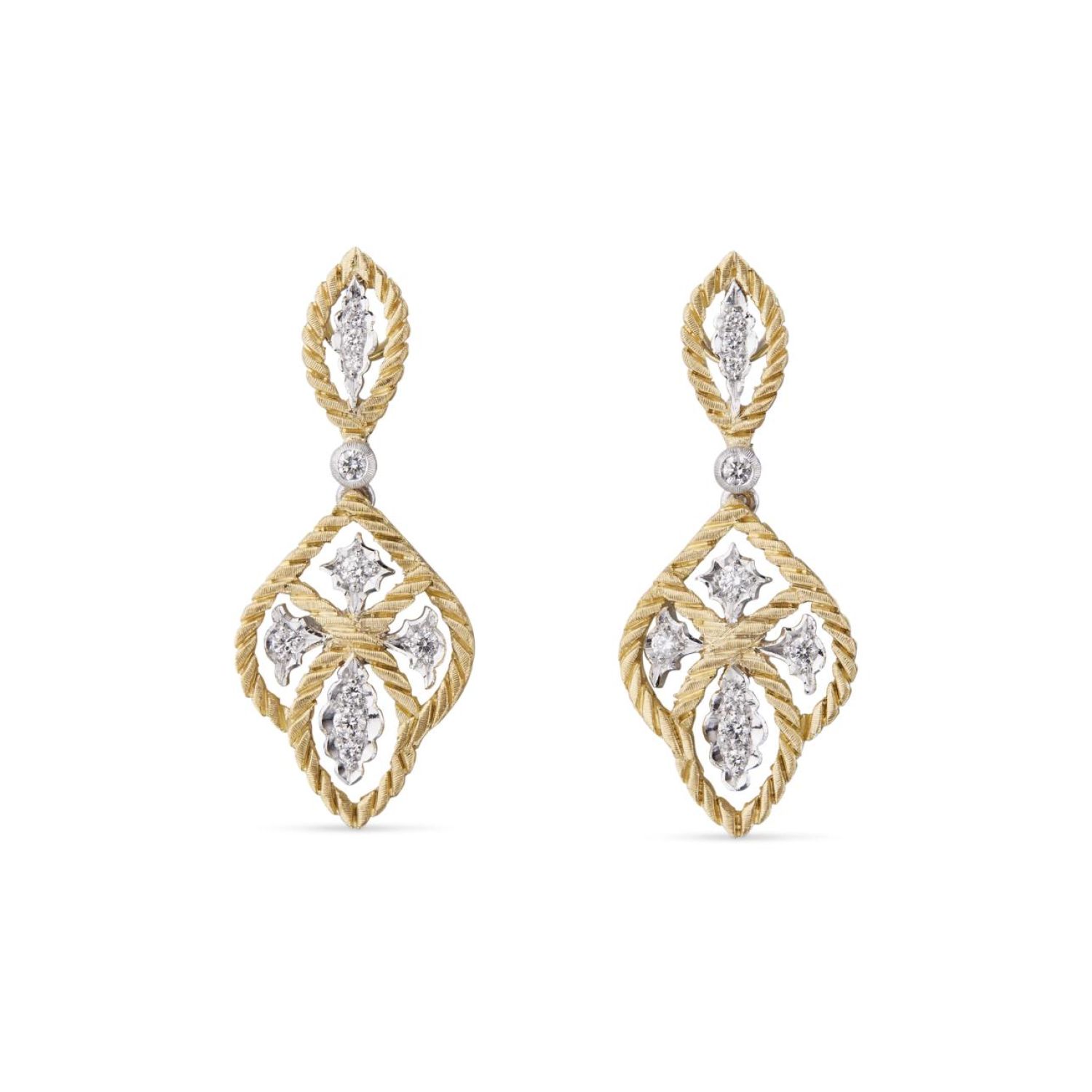 Pendant earrings in yellow and white gold with diamonds..