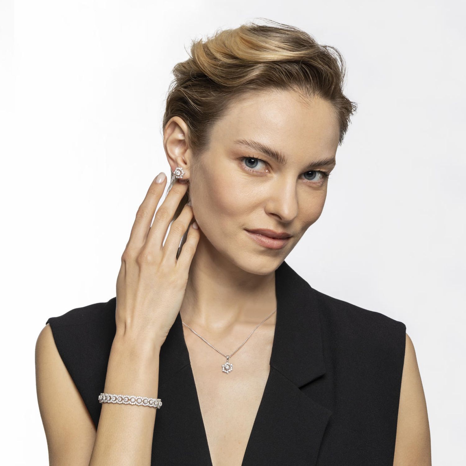 18K rhodium-plated white gold |
