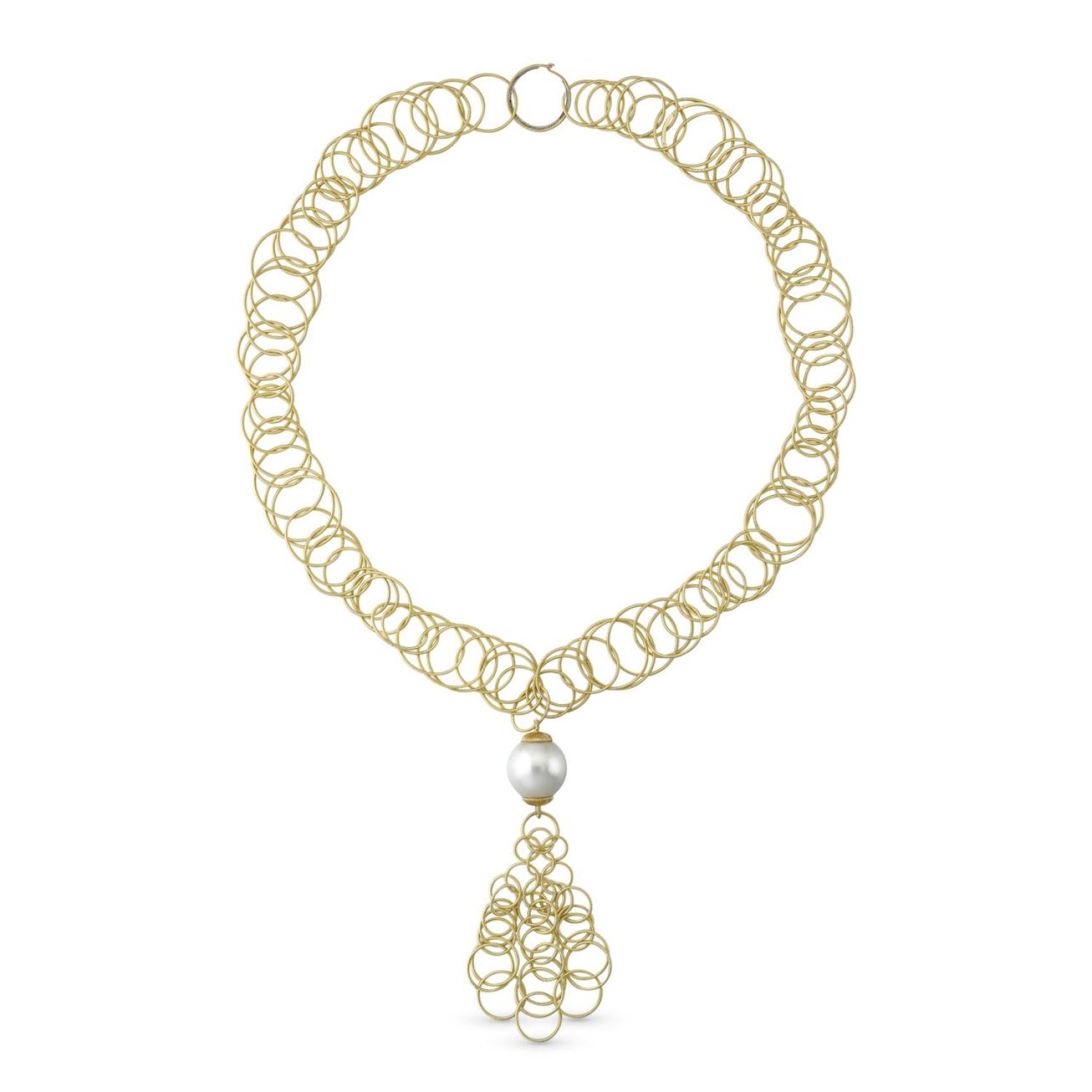 Pendant in yellow gold set with pearls. Length: 48 cm