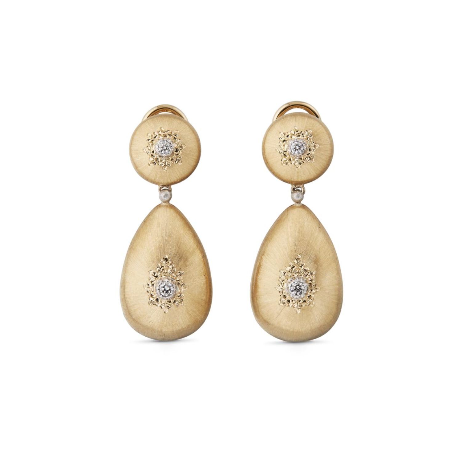 Earrings in yellow and white gold set with diamonds.
