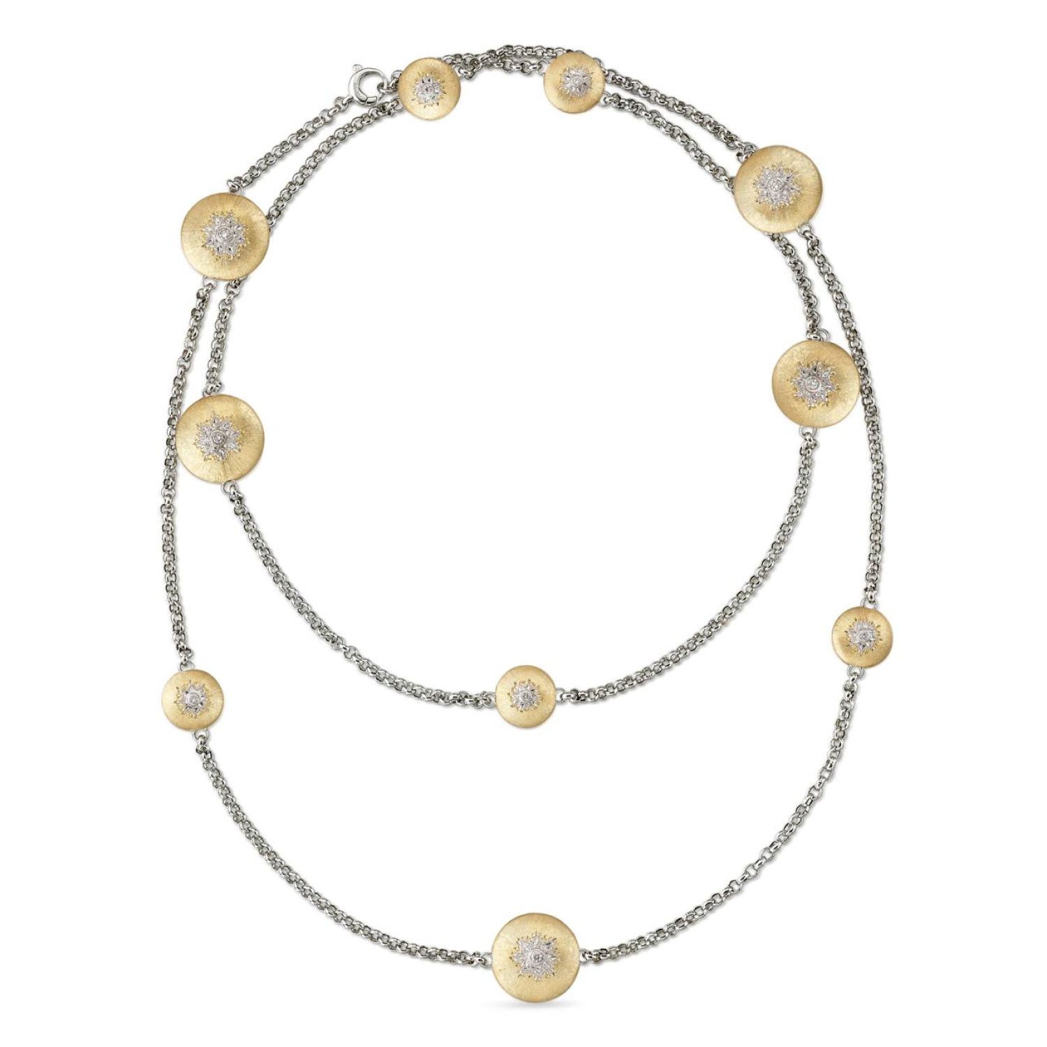 His aim was to create a piece of jewelry boasting all the iconic features of the Maison’s goldsmithing tradition, with a particular focus on engraving techniques. At a later date, Andrea Buccellati expanded the collection by introducing new decorative motifs, such as the AB and Giglio emblems, both embellished with diamonds.