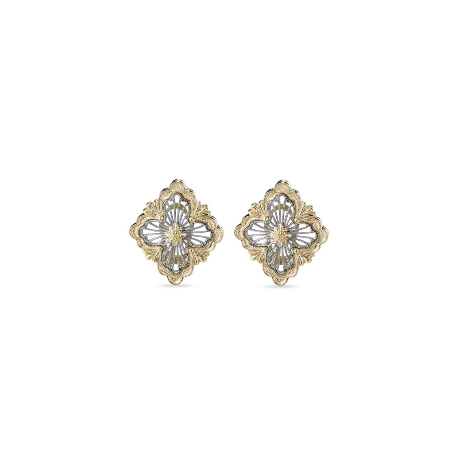Earrings in yellow and white gold. “Tulle raggiera” pattern