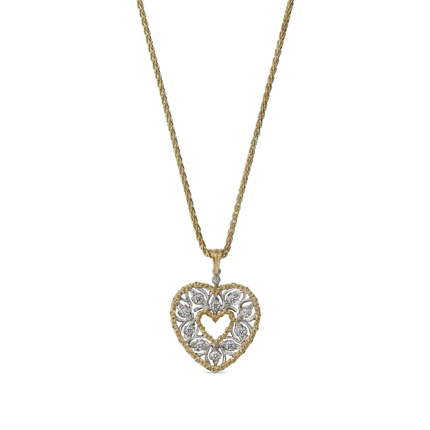Pendant in white and yellow gold set with diamonds.